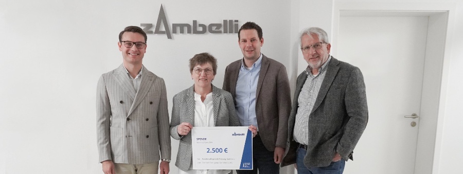 Die Unterstützung der Zambelli Fertigungs GmbH & Co. KG an das Familienpflegewerk Freyung-Grafenau findet auch in diesem Jahr mit einer Geldspende von 2.500 EUR seine gute Fortsetzung. Die Verantwortlichen von Zambelli wollen damit nicht nur ihre Dankbarkeit für die Arbeit der Organisation ausdrücken, sondern auch einen direkten Beitrag zur Unterstützung von in Not geratenen Menschen im Landkreis leisten.