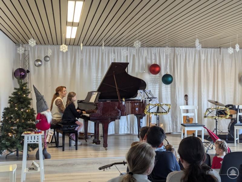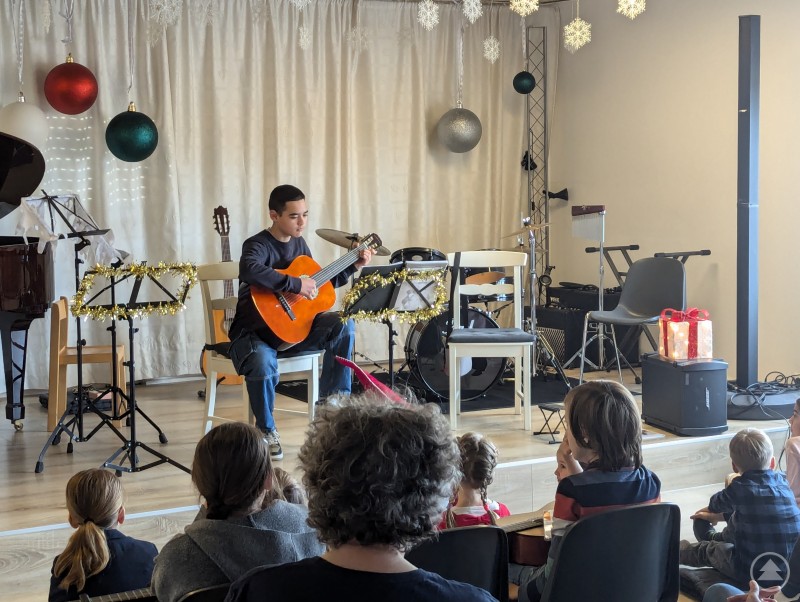 Zu hören waren beim ersten der fünf Termine im Saal der Musikschule neben zeitlosen Weihnachtsliedern wie „Jingle Bells“ auf dem Klavier auch moderne Lieder wie ein Remix des Ohrwurms „Last Christmas“. Dieser wurde gekonnt von einem 13-jährigen Schlagzeugschüler interpretiert. Auch die akustische Gitarre verzauberte am Samstagmorgen mit ihrer einzigartigen Klangvielfalt. Diese zeigte sich mit „Wir sagen euch an den lieben Advent“ einerseits klassisch weihnachtlich. Andererseits wurden dem unverstärkten Instrument mit dem Stück „Bossa für Noah“ auch sommerliche Töne entlockt. Diese Mischung kam hörbar gut an.
