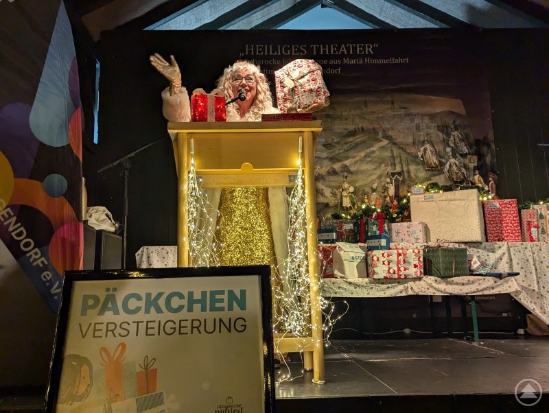 Weihnachtsengel Bianca Cicciarella setzte jedes der Päckchen auf der Bühne vor dem Alten Rathaus gekonnt in Szene. Sie stellte das jeweilige Unternehmen kurz vor, nahm die Gebote entgegen und entlockte dem Publikum das eine oder andere Lachen. Mitbieten konnten dabei alle, die Lust hatten. Und das waren viele. Fast schon im Sekundentakt schnellten die Hände in die Höhe. 20 Euro, 30 Euro, 45 Euro … Im Durchschnitt erzielte jedes der Päckchen einen Erlös von circa 65 bis 70 Euro. Die Spanne reichte bei den Höchstgeboten dabei von ungefähr 45 bis 100 Euro pro Paket. In Summe konnten am Donnerstag, 12. Dezember 2024, so beeindruckende 1.700 Euro an Spenden für den guten Zweck gesammelt werden. Und Fans des Formats dürfen sich gleich noch einmal freuen:
