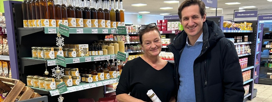 MdL Dr. Stefan Ebner machte sich selbst ein Bild von der Enso-Filiale in Frauenau und tauschte sich dort mit der Leiterin Andrea Peschl aus.
