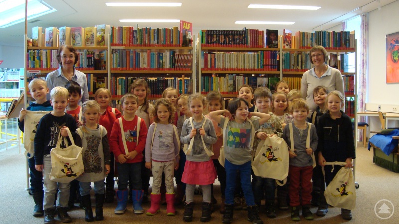 Zum Abschluss des Besuches gab es eine Büchertasche mit Buchgeschenk, sehr zur Freude der kleinen Besucherinnen und Besucher.