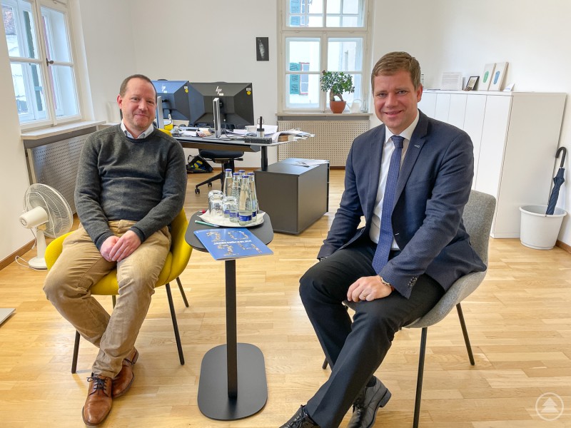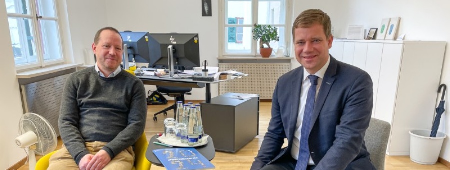 Bezirkstagspräsident Dr. Olaf Heinrich (r.) im Gespräch mit Prof. Johannes Hamann, Ärztlicher Direktor des Bezirksklinikums Mainkofen.