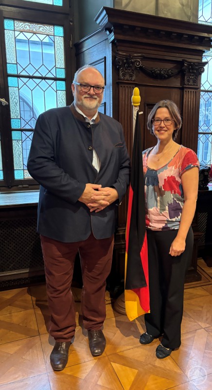 Oberbürgermeister Jürgen Dupper zusammen mit Rebecca Anderson beim Einbürgerungstermin im Kleinen Rathaussaal