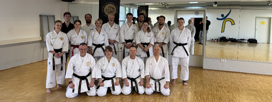 von links, stehend: Carmen Berner, Natalie Berner (beide 2. Karate Club Bayerwald, Grafenau), Johannes Grimm, Daniel Kassek (beide 1. Karate Club Bayerwald, Regen), Claudia Brauer, Dr. Michael Brauer, Jannis Brauer (alle Kaihatsu Karate, München), Anton Schoch (Seido Karate Marburg), Lea Muhr-hauser (1. Karate Club Bayerwald), Paul Kabierschke (Seido Karate Marburg), Larissa Probst (1. Karate Club Bayerwald)