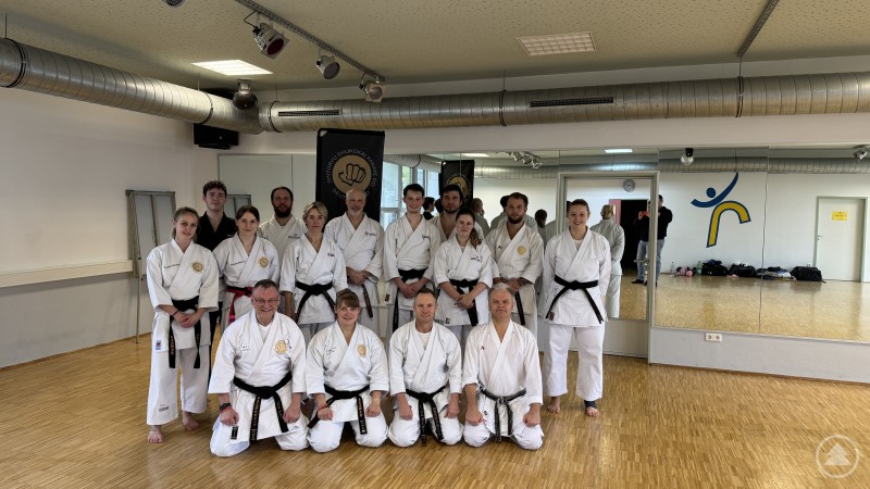 von links, stehend: Carmen Berner, Natalie Berner (beide 2. Karate Club Bayerwald, Grafenau), Johannes Grimm, Daniel Kassek (beide 1. Karate Club Bayerwald, Regen), Claudia Brauer, Dr. Michael Brauer, Jannis Brauer (alle Kaihatsu Karate, München), Anton Schoch (Seido Karate Marburg), Lea Muhr-hauser (1. Karate Club Bayerwald), Paul Kabierschke (Seido Karate Marburg), Larissa Probst (1. Karate Club Bayerwald)
