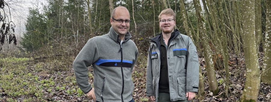 Stefan Huber, Bereichsleiter Forsten, begrüßt Forstwirt Matthias Kromer als IZW-Projektkoordinator am AELF Passau.