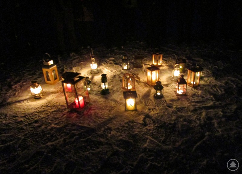 Mit Laternen geht es durch den winterlichen Nationalpark.