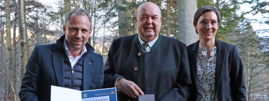Die Bayerische Staatsmedaille für herausragende Verdienste um die Umwelt erhielt Jochen Stieglmeier im Beisein von Nationalparkleiterin Ursula Schuster von Umweltminister Thorsten Glauber.