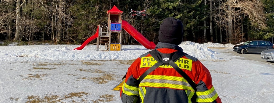Mit einer Drohne suchte die Feuerwehr St. Oswald das Gebiet nach weiteren Giftködern ab.