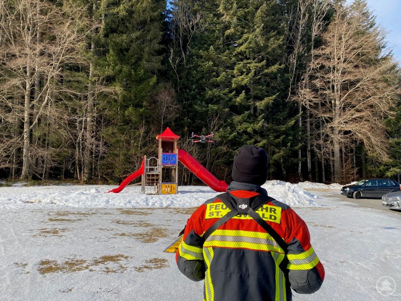 Mit einer Drohne suchte die Feuerwehr St. Oswald das Gebiet nach weiteren Giftködern ab.