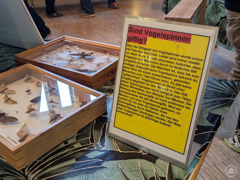 Schön war zudem, dass sich neben jedem Terrarium eine umfassende Beschreibung seines Bewohners fand. So konnte man ganz nebenbei lernen, wie die Tiere richtig gehalten werden oder was sie generell so besonders macht. Das schafft einen extrem wertvollen Beitrag zur Aufklärungsarbeit und dem Abbau von Berührungsängsten. An einem der Stände konnte man so zum Beispiel erfahren, dass das Gift von allen derzeit bekannten Vogelspinnen für gesunde, erwachsene Menschen nicht tödlich ist. Auch, was es mit der „Bombardierung“ als Verteidigungsmaßnahme einiger Bodenbewohner auf sich hat, wurde neben vielen anderen spannenden Fakten einfach verständlich erklärt.