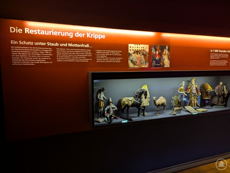 Ein Besuch im Stadtmuseum lohnt sich stets dann, wenn eine Sonderausstellung eröffnet wird. Gleichzeitig gibt es im Herzen des Deggendorfer Kulturviertels auch immer viele Dauerausstellungen zu erkunden. Das „Heilige Theater“ als Erzählkrippe gehört dazu. Hierbei handelt es sich um eine multimediale Präsentation von 13 Szenen aus der barocken Jahreskrippe. Ursprünglich war sie in der Pfarrkirche Mariä Himmelfahrt ausgestellt. Zu bestaunen sind dabei liebevoll gefertigte Figuren von Mensch und Tier, die das Leben von Jesus aus dem Neuen Testament nacherzählen:
