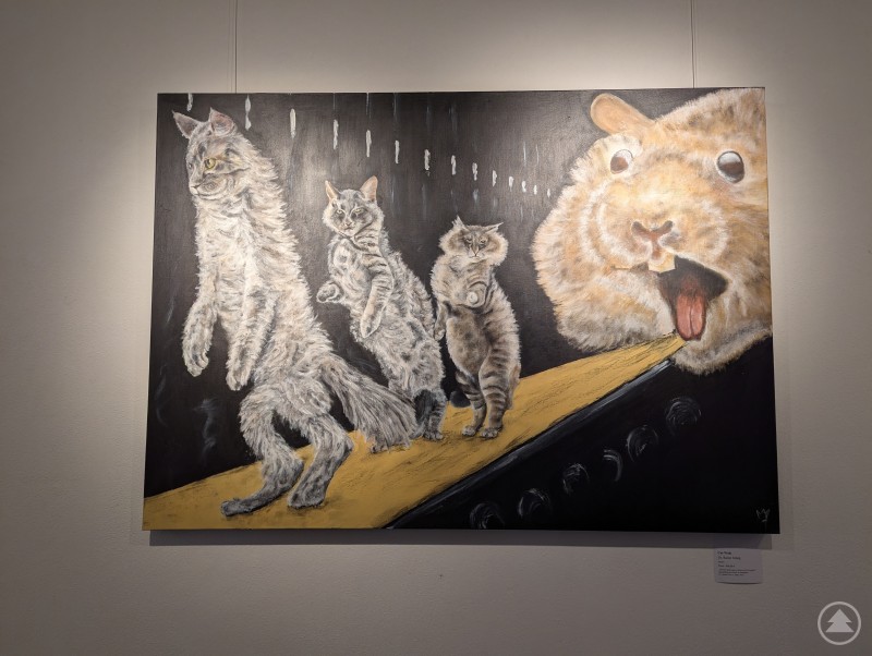 Einerseits sinniert der Osterhofener Künstler Peter Mühlbauer in seiner Kabinettausstellung Piranhas sind auch nur Fische humorvoll über Fakten, Fiktionen und heimische Mythen. Andererseits widmet sich Dr. Rainer König aus Neuhausen in seiner ersten, großen Themenausstellung „Tierisch unterwegs in Malerei und Fotografie“ der einzigartigen Vielfalt unserer Tierwelt. Ihre Bewohner und Bewohnerinnen haben aber nicht immer spitze Zähne wie der Piranha. Manche der Motive leben sogar direkt mit uns zusammen, als Haustiere oder in der freien Wildbahn.