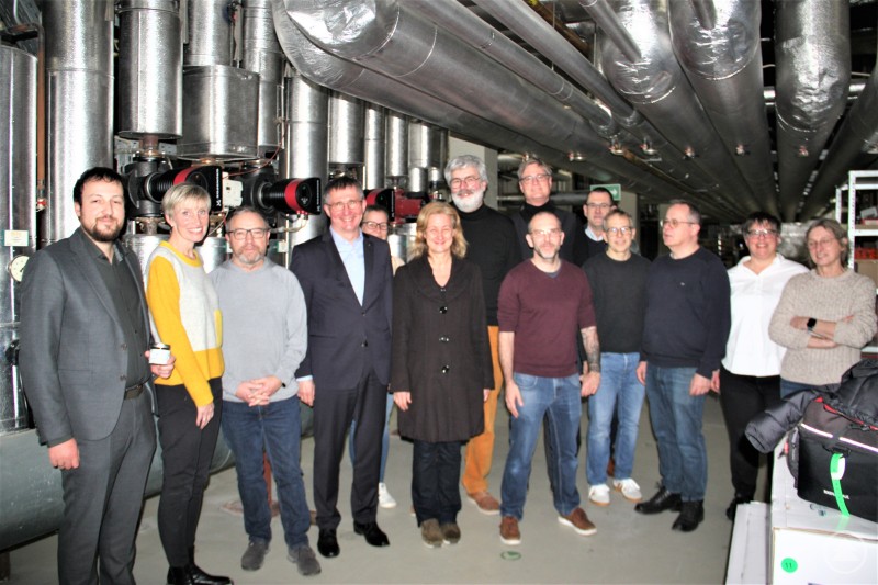 Beim Rundgang durch die Unterwelt des Passauer Erlebnisbades erläuterten Stadtwerke-Geschäftsführer Stephan Prechtl (5.v.l.) und seine Mitarbeiter Lutz Frank (1.v.l.) sowie Daniel Winter (vorne 6.v.l.) der gut 20-köpfigen Rotary-Gruppe um Präsident Peter Niedermeier (3.v.l.) die wirtschaftliche und technische Ausgangslage des heutigen peb.