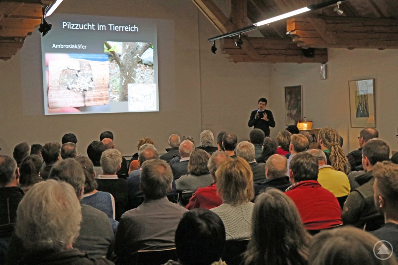 Dr. Peter Biedermann berichtete den Besuchern vom erstaunlichen Sozialverhalten der im Holz brütenden Borkenkäfer.