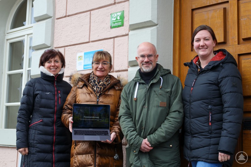 Touristiker aus den FNBW-Mitgliedsorten Bayerisch Eisenstein und Zwiesel sowie die Stadt Regen arbeiten gemeinsam am Projekt. v.l. Karin Fuchs (FNBW-TI Glasstadt Zwiesel), Angelika Michl (TI Stadt Regen), Robert Kürzinger (Geschäftsführer der Ferienregion Nationalpark Bayerischer Wald) und Daniela Schwarz (FNBW-TI Bayerisch Eisenstein)