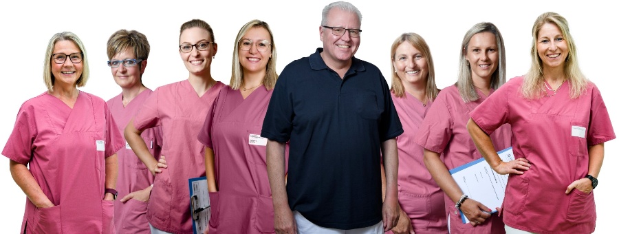 Das langjährige, erfahrene Team trägt ebenfalls zum Erfolg der Praxis bei. Einige Mitarbeiter sind seit 30 Jahren dabei, andere seit mehr als 20 Jahren. Alle arbeiten Hand in Hand, um den Patienten eine optimale Versorgung zu bieten.