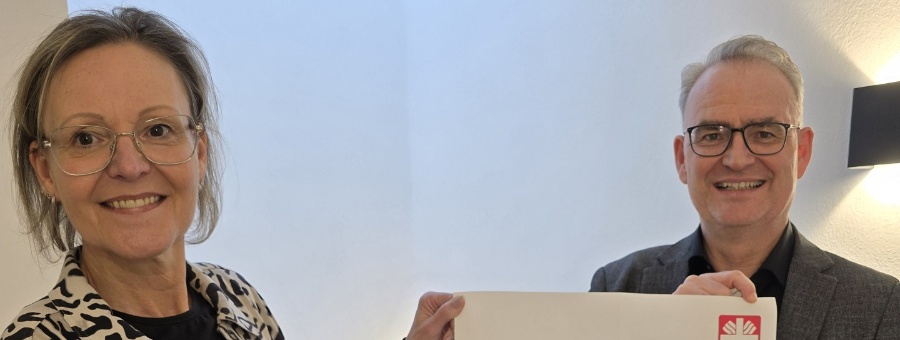 Die Caritasvorstände Stefan Seiderer und Andrea Anderlik rufen zu Spenden auf.