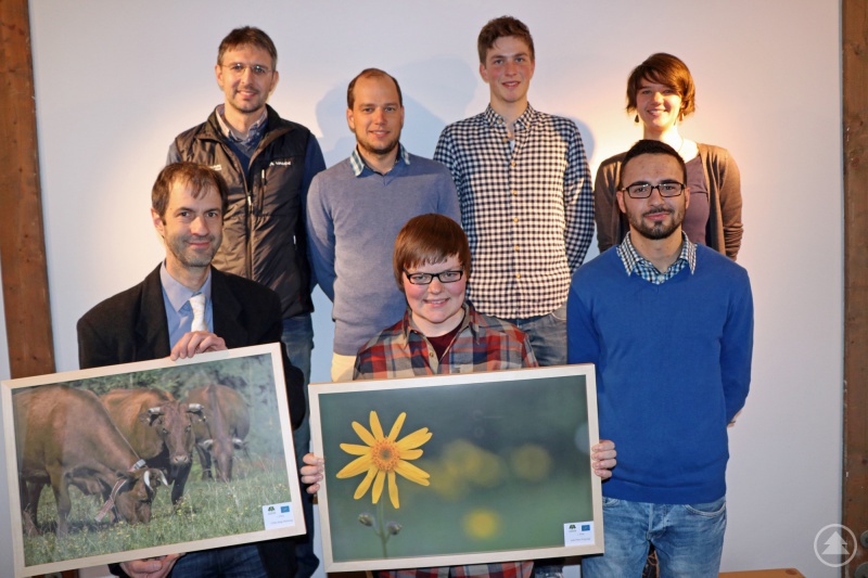 Die beiden Siegerbilder präsentieren Gewinnerin Julia Piser und Nationalpark Forschungsleiter Jörg Müller mit Jochen Linner (Nationalpark, oben von links), Johannes Matt (3. Platz), Johannes Schmid (Teilnehmer), Claudia Schmidt (Nationalpark) und Josef Kopp (2. Platz, vorn rechts).