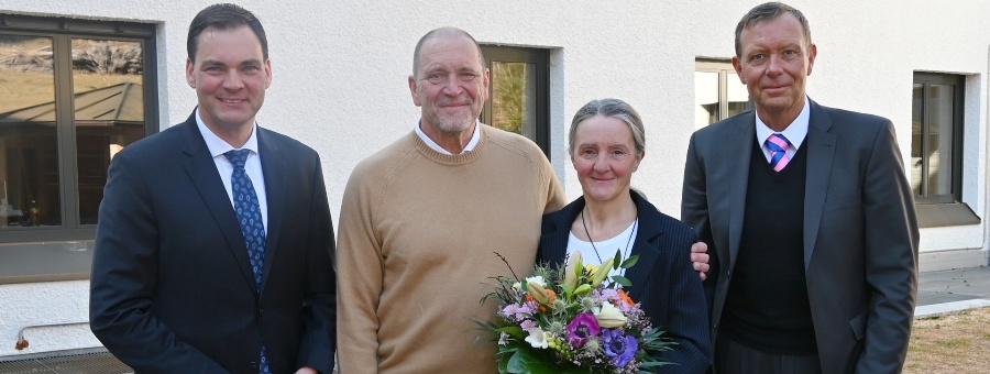 (v. li.) Landrat und Aufsichtsratsvorsitzender Sebastian Gruber, Chefarzt der Anästhesie ErnstJürgen Korritter, seine Frau Cornelia Korritter und Geschäftsführer Marcus Plaschke