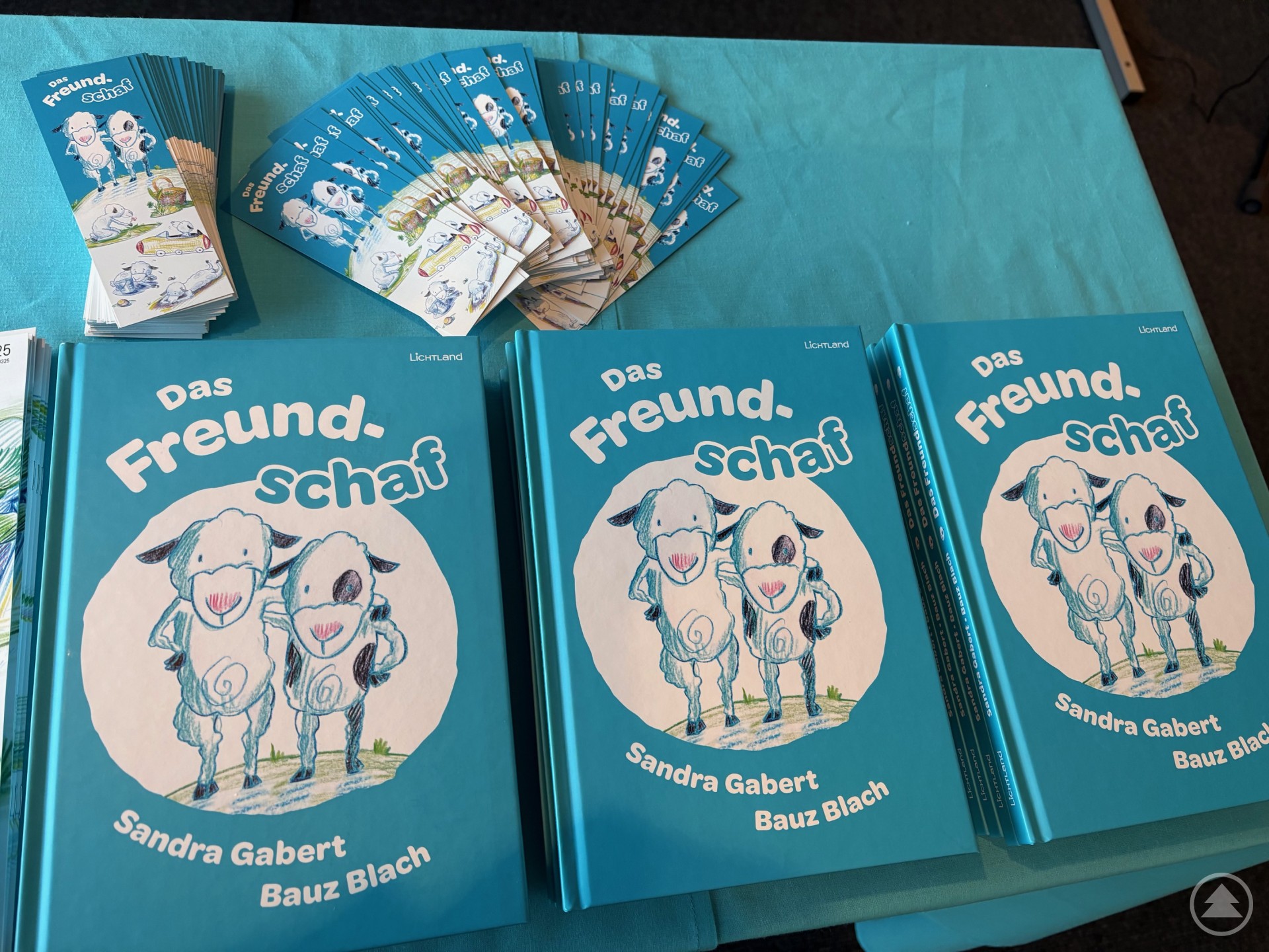 Musikalisch begleitet hat die Lesung die Schönbergerin Lea Boxleitner, grafisch gestaltet wurde DAS FREUNDSCHAF von Daniela Schilling-Weikert. Das Buch wird bald auch als eBook und in englischer Sprache (The Friendsheep) erscheinen. Sandra Gabert wird dafür eine Lehrerhandreichung in Deutsch und Englisch erstellen. Ganz klassisch kann man DAS FREUNDSCHAF in allen Buchhandlungen oder im Onlineshop der edition Lichtland kaufen.