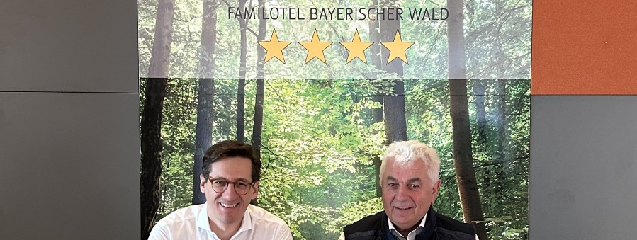 Vom Bauernhof zum Vorzeigehotel: MdL Dr. Stefan Ebner tauschte sich mit Günter Schon, Seniorchef