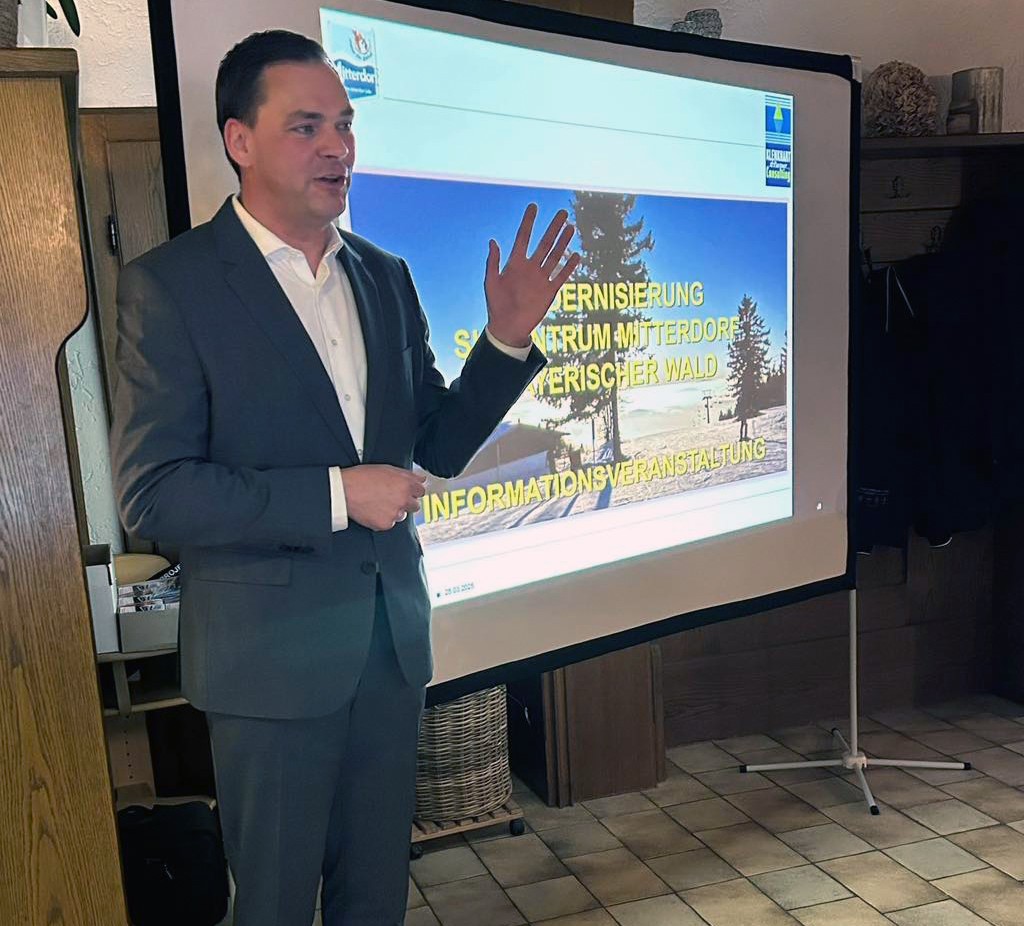 In den kommenden Monaten werden bedeutende Investitionen zur Modernisierung des Skizentrums Mitterdorf getätigt, um die Erneuerung der Liftanlagen, die Verbesserung der Pisten und die Schaffung neuer Sommer-Freizeitangebote umzusetzen. Hiermit soll das Skigebiet nicht nur weiterhin ein interessantes Ziel für Wintersportler bleiben, sondern auch zu einem ganzjährigen Naturerlebnis werden. Mit einem Mix aus modernen Spielelementen, entsprechendem Fokus auf Nachhaltigkeit sowie möglichst geringem Eingriff in den Naturraum ist man bestrebt, den Besuchern ein attraktives Naturerlebnis mit „Wiederbesuchspotenzial“ zu bieten. In einer Bürgerinformationsveranstaltung am Dienstagabend hatten die ca. 100 Besucher die Gelegenheit, sich ausführlich über die anstehenden Baumaßnahmen zu informieren. Zudem wurde ein Ausblick auf den künftigen Winter- und Sommerbetrieb gegeben.