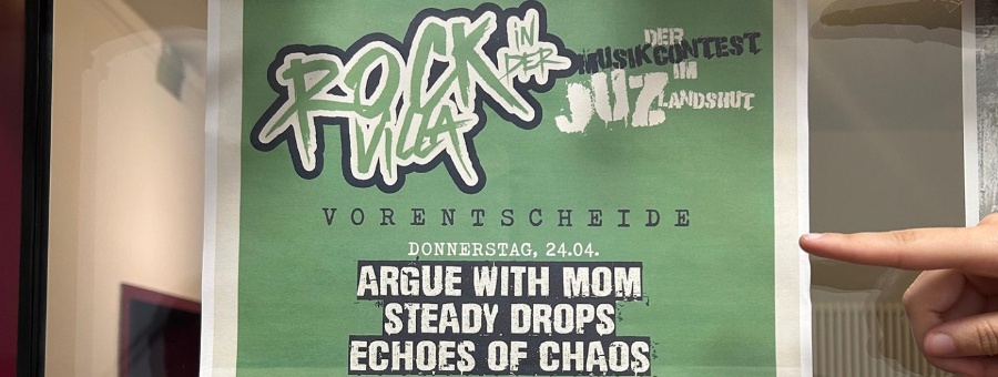 Nach einer mehrwöchigen Bewerbungsphase zwischen Januar und März finden nun von 24. - 26. April die drei Vorentscheide des 17. Rock in der Villa Bandcontests im Jugendzentrum Poschinger Villa Landshut statt. Insgesamt neun junge Acts unterschiedlichster Genres haben sich aus einer Vielzahl an Bewerbungen aus ganz Niederbayern durchgesetzt und werden nun an drei Abenden durch eine dreiköpfige, fachkundige Jury sowie das anwesende Publikum bewertet.