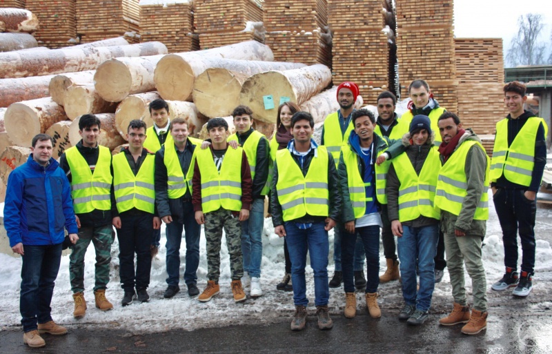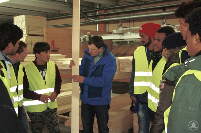 „Holz geht“, „Holz lebt“, „Holz hat Gefühl“ - Für das ausländische Ohr sind es ungewohnte Begriffe, mit denen Max Kreuzer seinen Werkstoff beschreibt. Am Montag empfing der Diplom-Forstwirt eine Regener Berufsintegrationsklasse bei seinem Arbeitgeber „Holz Schiller“ im Gewerbegebiet Regen/Metten. Schnell wurde den 15 jungen Männer aus Syrien, Eritrea, Afghanistan, Mali, dem Senegal, Tunesien und Nigeria klar: Wo Baumaterial vermenschlicht wird, muss besonders viel Gefühl und Leidenschaft am Werk sein.