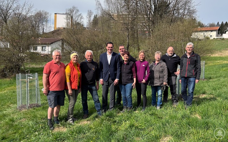 Landrat Sebastian Gruber (4 v. r.) verschaffte sich einen Überblick über das Fortschreiten des Projekts Kreisobstlehrgarten und bedankte sich bei den Mitgliedern der Kreisverbandsleitung