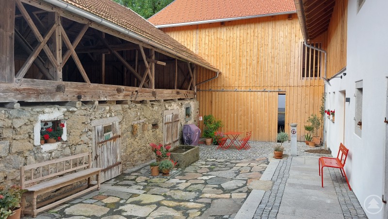 Der ausgezeichnete Hof in Liebersberg prägt das Ortsbild maßgeblich. Dank des Idealismus der Eigentümer konnte die historische Struktur erhalten und in eine moderne Nutzung überführt werden. Während das Wohnhaus stilgerecht saniert wurde, entstand aus dem ehemaligen Austragshaus und Teilen des Stadels eine Praxis für Osteopathie und Physiotherapie. Der gesamte Stadel wurde aufwendig instandgesetzt. Auch der Innenhof erfuhr eine deutliche Aufwertung und wird durch das ursprüngliche Stallgebäude im Süden abgeschlossen.