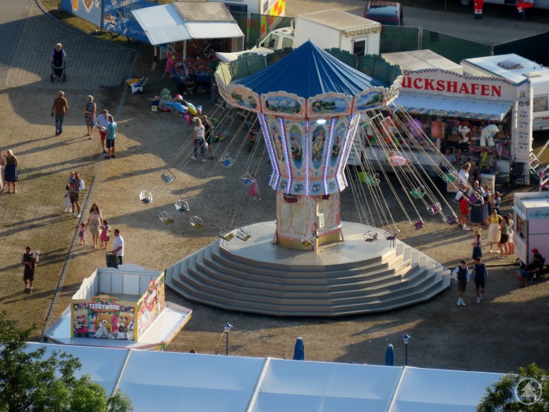 Das Volksfest aus der Vogelperspektive sehen – das ist dieses Jahr in Aidenbach möglich. Luftaufnahme des Volksfestes in Aidenbach mit Festzelten und Fahrgeschäften.