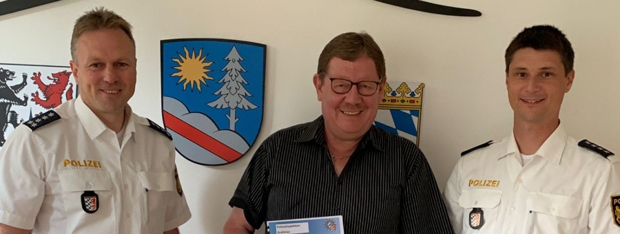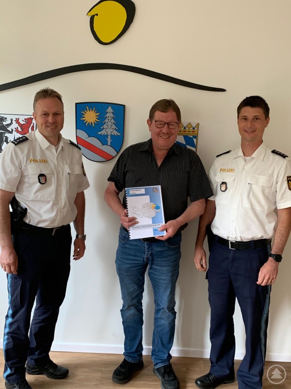 Bürgermeister Martin Geier (Mitte) mit EPHK Thomas Kern (links) und PHK Franz Weinzierl (rechts) beim jährlichen Sicherheitsgespräch im Rathaus Schöfweg.