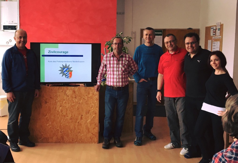 GRAFENAU/ 2. Karate Club Bayerwald. Getreu dem Motto „Weggeschaut ist mitgemacht – tu was, zeig Zivilcourage!“ richteten der 2. Karateclub Bayerwald e.V. und die VHS zusammen mit der Polizeiinspektion Grafenau das Präventionsseminar „Zivilcourage – Verhaltensempfehlungen für couragierte Helfer“ aus. In diesem Kurs, der insgesamt über drei Stunden ging und von den drei erfahrenen Polizeibeamten Alexander König, Manfred Smolka und Josef Schmutzer geleitet wurde, erhielten die Teilnehmer rechtliche Informationen über Notwehr und Nothilfe. Mittels einer Präsentation und Videoclips wurden sie geschult, wie man sich vor möglichen Übergriffen schützen kann und erhielten Anleitungen, wie man Opfern hilft, ohne sich selbst in größere Gefahr zu bringen.
