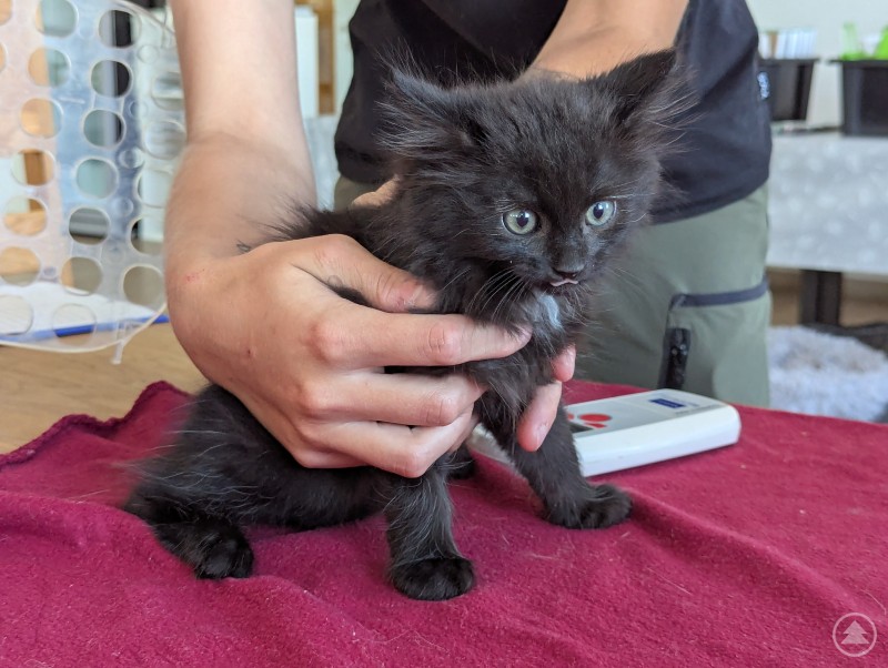 Und schon ist es vorbei: Behutsam überprüft Tierarzthelferin Julia Seidl den neuen Chip eines mutigen Kätzchens