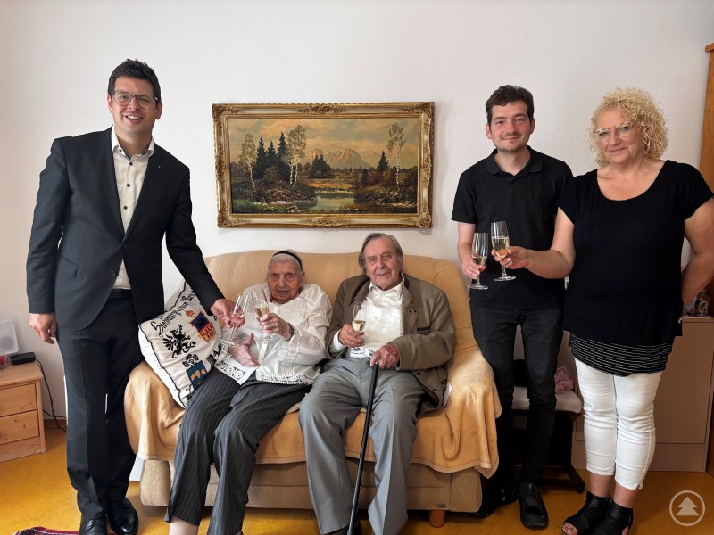Auch Gerhard Michel, selbst bereits über 102 Jahre alt, war bei der Feier mit dabei. Gemeinsam genossen die beiden Senior:innen die Aufmerksamkeit und Anerkennung. Neben Bürgermeister Pichler gratulierten auch Pfarrer Simon Steinbauer und Seniorenreferentin Doris Rötzer.