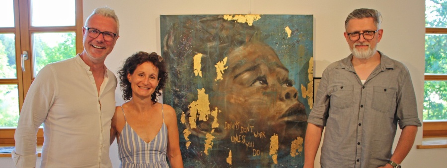 Rund 20 Gäste trotzten der Sommerhitze und nahmen an der Vernissage teil. Sie alle zeigten sich begeistert von den großformatigen Acrylporträts, die mit goldenen Akzenten, Zitaten und Liedtexten versehen sind. Zu sehen sind die Bilder zu den regulären Öffnungszeiten der Tourist-Information: Montag bis Donnerstag von 9 bis 12 Uhr sowie von 14 bis 17 Uhr.