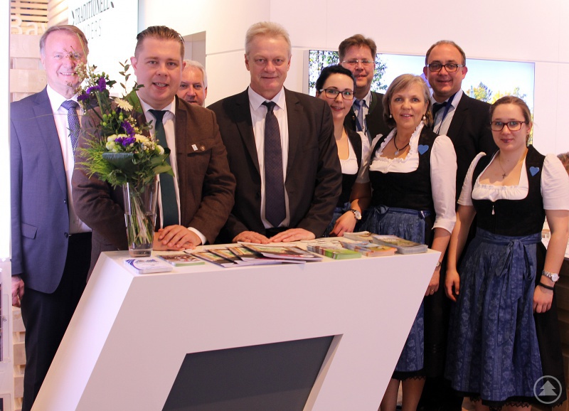 Adam und Killinger begrüßten die helle und freundliche Gestaltung der Halle und die gelungene Integration des Arberlandes. Die beiden Landräte nutzten den Messebesuch auch für zahlreiche Gespräche am Messestand. So konnten sie unter anderem mit dem ehemaligen Bundestagsabgeordneten Ernst Hinsken einen Ehrenpreisträger des Landkreises Regen begrüßen. Aber auch Alois Rainer, der Nachfolger Hinksens als direktgewählter Bundestagsabgeordneter des Wahlkreises Straubing-Regen, trafen Adam und Killinger auf der weltgrößten Touristikmesse.