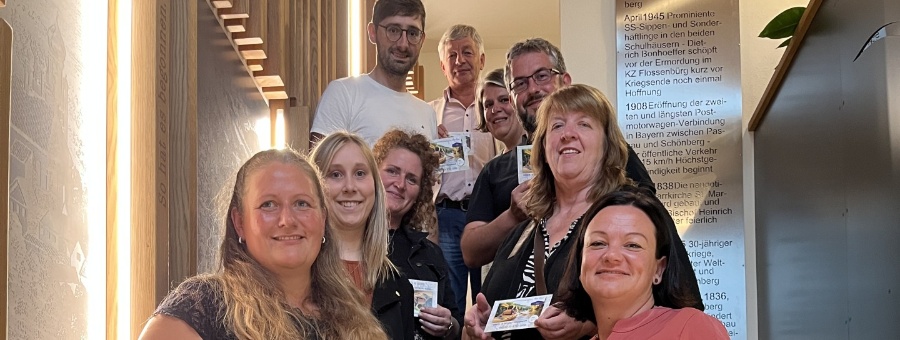 Startklar für die Sommerferien: Beim Jugendnetzwerktreffen in Schönberg wurden die frisch gedruckten Ferienprogramm-Postkarten überreicht – am neu eröffneten Luitpoldplatz 3 mit Tourist-Info, Co-Working-Space und einem Ort der Erinnerung.