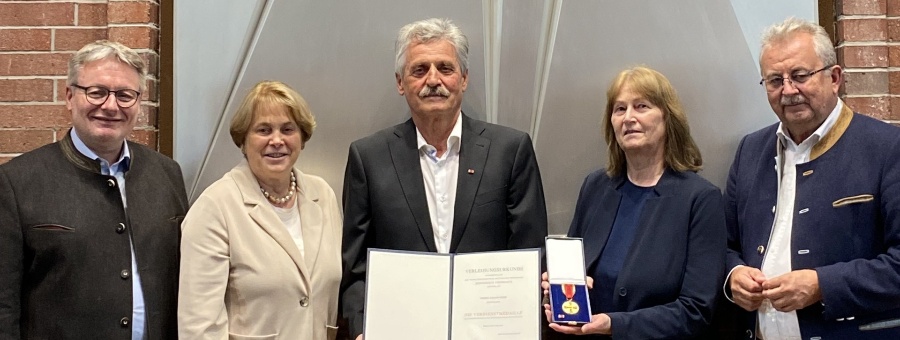 Landrat Josef Laumer überreichte Johann Berr im Beisein seiner Frau Christa, Bürgermeisterin Barbara Unger und MdL Josef Zellmeier die Verdienstmedaille der Bundesrepublik Deutschland.