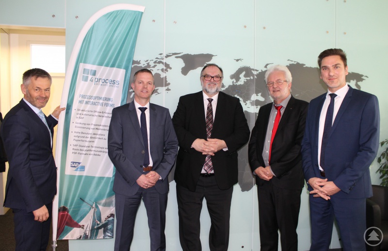 v.l.: Wirtschaftsreferent Werner Lang, Vorstand der 4process AG Gerhard Steinhuber, Oberbürgermeister Jürgen Dupper, Vorsitzender des Aufsichtsrats Prof. Dr. Peter Kleinschmidt und Vorstand der 4process AG Christian Raab