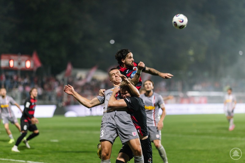 Intensives Duell zwischen Jahn Regensburg und Viktoria Köln im Mittelfeld.