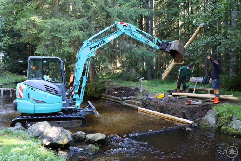 Mit Hilfe eines Baggers wird die Kneippanlage bei Spiegelau in dieser Woche saniert.