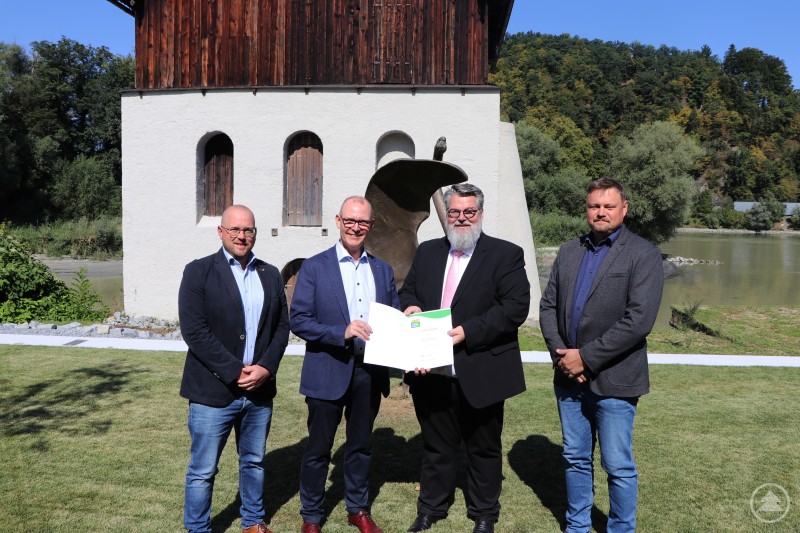 Die Pfaffinger Unternehmensgruppe mit Hauptsitz in Passau wurde erneut für ihre qualifizierten freiwilligen Umweltleistungen ausgezeichnet. Bürgermeister Andreas Rother überreichte in Vertretung des Bayerischen Umweltministers Thorsten Glauber die Urkunde des Umwelt- und Klimapakts Bayern an Dr. Markus Pfaffinger und die Verantwortlichen des Unternehmens.
