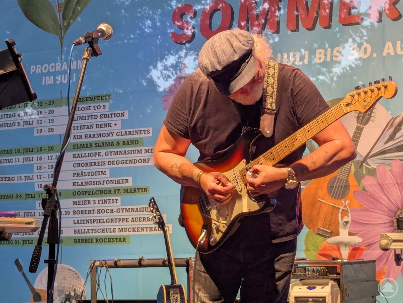 Eigentlich hätte Stefan Csákány schon am Freitag, 29. August 2025, auf der Freiluftbühne stehen sollen. Das Wetter spielte aber leider nicht mit. Zum Glück fand sich umgehend ein Ersatztermin für den ins Wasser gefallenen Auftritt: Nur zwei Tage später, am Sonntag, 31. August, präsentierte der sympathische Musiker sein Solo-Programm „Echoes of the Moon“ im Theatron. Damit verwandelte er den Deggendorfer Stadtpark ab 18:30 Uhr in einen Ort der Klangträume à la Pink Floyd. Zu diesem Spektakel am letzten Sommerfestival-Tag waren noch einmal ordentlich viele Gäste gekommen. Dazu gehörten langjährige Pink-Floyd-Fans ebenso wie spontane Zuhörende. Die Bandbreite war also groß - genauso wie das Interesse am Konzert. Denn Csákánys Solo-Programm wird von Kennern gerne als eines der besten seiner Art beschrieben. Zu Recht? Man muss es selbst erlebt haben: