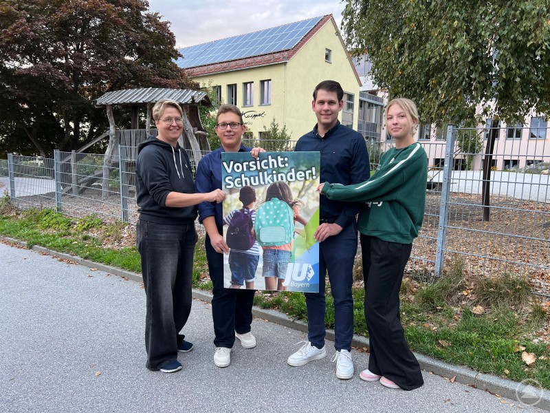 Auch in Schönberg machte die JU Grafenauer Land mit der Plakataktion auf die Sicherheit der Schulkinder aufmerksam.