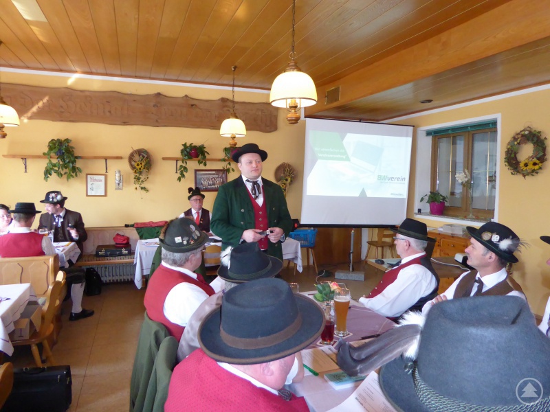 Stefan Behringer (1. Vorstand des Musik- u. Heimatverein Haus i. Wald / Geschäftsführer der BWmedien GmbH) stellt den Vorständen und Vereinsvertreter des Dreiflüsse-Trachtengau Passau die Online-Vereinsverwaltungslösung „BWverein“ vor.