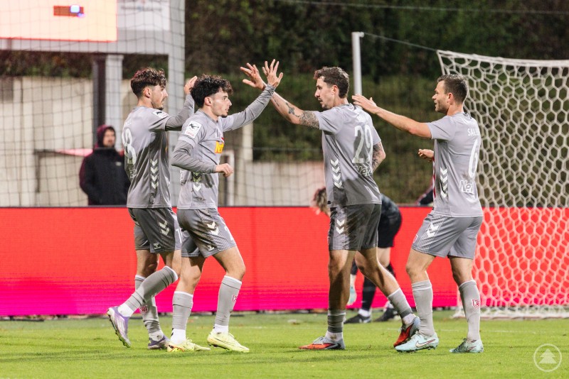Ähnlich ausgeglichen ging es auch in den zweiten Durchgang, auch wenn die Gastgeber einen Tick mehr vom Spiel hatte. Beide Mannschaften verzichteten auf zu viel Risiko, der Spielfluss wurde durch mehrere Unterbrechungen und kleinere Foulspiele unterbrochen. Nach 56 Minuten kamen Stolze & Oliveira für Bauer & Müller. Bene Saller rutschte dadurch auf die Sechser-Position, Stolze auf die rechte Schiene und Oliveira auf die linke Schiene. Ilic setzte einen Freistoß von der linken Seite ans Außennetz - keine Gefahr für das Jahn Tor (58.). Viele Zweikämpfe & Intensität in vielen Aktionen prägten das Spiel. Der eingewechselte Oliveira flankte von links auf den langen Pfosten, wo Stolze auftauchte und den Ball Richtung Tor bugsierte - Belkahia klärte auf der Linie (65.). Doch das Momentum war in dieser Pause auf Seiten des Jahn: Ziegele spielte einen hohen Ball hinter die Kette, Stolze brach auf rechts durch, seine flache Hereingabe verwertete am langen Pfosten Oliveira, der den Ball unter die Latte zum 2:1 setzte (66.). Havelse versuchte zu antworten: Nach einer Ecke segelte der Ball tückisch in den Fünfer, Gebhardt boxte den Ball unter Bedrängnis weg (71.). Gebhardt rutschte bei einem Rückpass weg und bereinigte die Situation kurz bevor Posselt, der ihn anlief, zur Stelle war (72.). Rein in die Crunchtime - die Jahnelf verteidigte nun leidenschaftlich, Havelse kam zunächst nicht mehr zwingend genug in den Regensburger Strafraum. Rufidis kam aus dem Rückraum nach einer Ecke zum Abschluss, traf aber einen eigenen Mann an der Hacke (87.). In einer fast neunminütige Nachspielzeit wurde es noch einmal brenzlig: Havelse warf alles nach vorne und mehrmals musste die Jahn Defensive mit großem Willen verteidigen. Boujellab setzte einen Schuss aus 20 Metern knapp am rechten Pfosten vorbei (90+5.). Posselt köpfte nach einer Kolgeci-Flanke in Gebhardts Arme (90.+8). Dann ertönte der erlösende Schlusspfiff - die Jahnelf holte tatsächlich den so lang ersehnten Auswärtsdreier. Am kommenden Wochenende geht es mit einem Heimspiel am Samstag gegen den VfB Stuttgart II (25.10.) weiter.