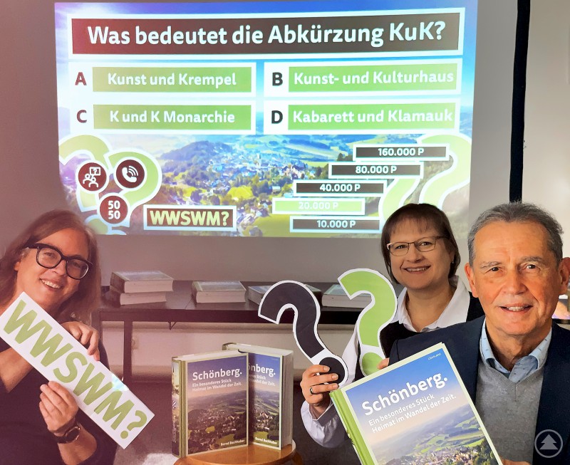 Das Event findet am 24. November um 18.30 Uhr in der Buchhaltestelle in der edition Lichtland am Unteren Marktplatz statt. Nach einer Qualifizierungsrunde treten die besten Teilnehmenden in der „Arena des Wissens“ gegeneinander an und stellen sich den Fragen von Bernd Bachhuber. Die Plätze sind begrenzt und heiß begehrt. Als Trainingsmaterial dient das Schönberger Heimatbuch, doch auch Ortskundige ohne Buchkenntnisse dürfen ihr Glück versuchen. Ergänzt wird das Quiz durch Drohnenaufnahmen der Ortsteile von Fotograf Sepp Eder.