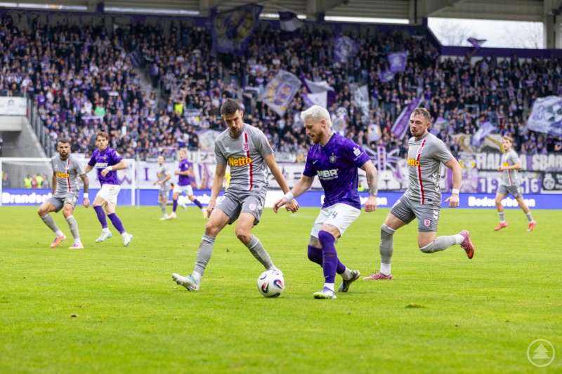 Der Jahn bot verglichen mit dem 3:2-LHeimsieg gegen Stuttgart II Robin Ziegele und Sebastian Stolze für Philipp Müller und Leo Mätzler auf. Verglichen mit dem 1:1 in Hoffenheim bot Aues Trainer Jens Härtel die selbe Startformation auf. Aue war nach sechs Minuten zum ersten Mal in der Regensburger Gefahrenzone - eine Guttau-Flanke boxte Felix Gebhardt in Sicherheit. Die Gastgeber waren aber gleich auf Betriebstemperatur: Guttaus Schlenzer wurde gerade noch zur Ecke abgefälscht (9.). Im Anschluss an diesen Standard geriet eine Abwehr zu kurz, Clausen ließ einen 25-Meter-Knaller Richtung Jahn Gehäuse los, Gebhardt lenkte die Kugel im letzten Moment über die Querlatte - Glanztat (9.). auf der Gegenseite gab es in Person von Stolze die erste Torannäherung des SSV, doch der rechte Schienenspieler bekam keinen Druck hinter der Ball (10.). In der Folge hatte die Jahnelf mehrere Standards & Malone-Einwürfe zu verteidigen - viel Arbeit für die Jahn Defensive um Jahn Kapitän Felix Strauss. Nach einer Auer Kontersituation bekam Nico Oliveira zum zweiten Mal innerhalb kurzer Zeit einen Schuss aus kurzer Distanz auf den Kopf - der an Nase lädierte Schienenspieler musste erneut behandelt werden. Für Regensburgs Nummer 25 ging es nicht weiter, Bene Bauer kam für ihn (21.). Weiterhin tat sich die Jahnelf schwer, ihre Offensive in Szene zu setzen - Hottmann & Hermes hatte bis dato wenig Aktionen & Ballkontakte. Vieles blieb in diesem Spiel bisher Stückwerk. Nach einem hohen Ballgewinn kam der gerade eingewechselte Bauer zu einer Halbchance - der linke Schienenspieler zog etwas überhastet ab (26.). Kurze Zeit später meldete sich der SSV nun endgültig an: Bauer flankte von links, Eichinger ließ per Kopf abtropfen auf Hottmann, der aus knapp 10 Metern per Dropkick FCE-Torwart Männel zur einer Glanztat zwang (28.). Bauer schnappte sich einen weiteren Ball in der gegnerischen Hälfte, zog Richtung Strafraum und wurde kurz vor der Strafraumgrenze zu Fall gebracht. Eichinger schlenzte den fälligen Freistoß aufs Tornetz (35.) - nächste gute Regensburger Gelegenheit. Auf der Gegenseite wurde es wieder in Folge einer Ecke gefährlich, Majetschak zielte mit einem Schuss aus dem Rückraum ein, zwei Meter über den Kasten (36.). Zwei Minuten später hieß es aus Jahn Sicht Luft anhalten: Auf links bekam der SSV keinen Zugriff, nach einer flachen Hereingabe kam Clausemn relativ freistehend im Strafraum zum Abschluss - vorbei, da lag das 1:0 duchaus in der Luft (38.). Kurz vor der Halbzeit befreite sich die Jahnelf noch einmal und setzte sich in der Auer hälfte fest. Fein dribbelte sich in den Strafraum, blieb aber hängen (42.). Bei der anschließende Ecke blieb der Jahn am Drücker, Stolze drehte sich um seinen Gegenspieler und zog ab - Männel klärte mit den Fäusten (43.). Und dann noch einmal Aue: Stefaniak prüfte Gebhardt bei einem Freistoß (45.). Rein in die fünfminütige Nachspielzeit und dann war es passiert: Nach der nächsten Ecke konnte sich die Jahnelf erneut nicht befreien, einen weiteren Chip in den Fünfer legte Uhlmann per Brust in den Lauf von Majetschak, der vor Gebhardt cool blieb und zum 1:0 für die Veilchen traf (45.+1). Doch die Jahnelf schlug sofort und noch vor dem Pausenpfiff zurück: Eichinger flankte gefühlvoll von rechts, Hottmann rammte den Ball in der Mitte per Kopf zum 1:1-Ausgleich über die Linie (45.+6).